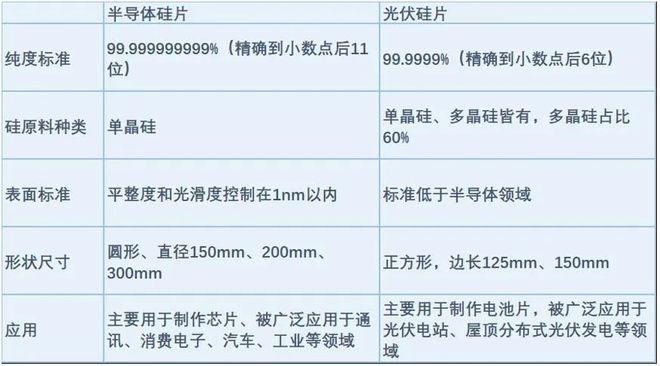 与芯片相比,制造光伏板对硅纯度的要求要稍低,纯度标准只需要99.9999%,达不到制作芯片的99.999999999%。